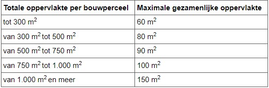 - het oppervlak aan ondergrondse bouwwerken mag niet meer bedragen dan het toegestane oppervlak aan bouwwerken boven peil vermeerderd met 15 m²;
