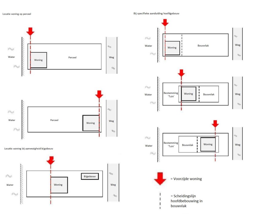 indien meerdere zijden van het perceel van de weg afgekeerd zijn, wijzen burgemeester en wethouders een achterste perceelsgrens aan;
