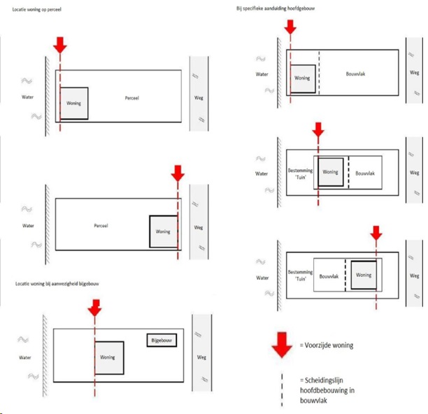 erf- en terreinafscheidingen: - voor de voorgevelrooilijn - elders |