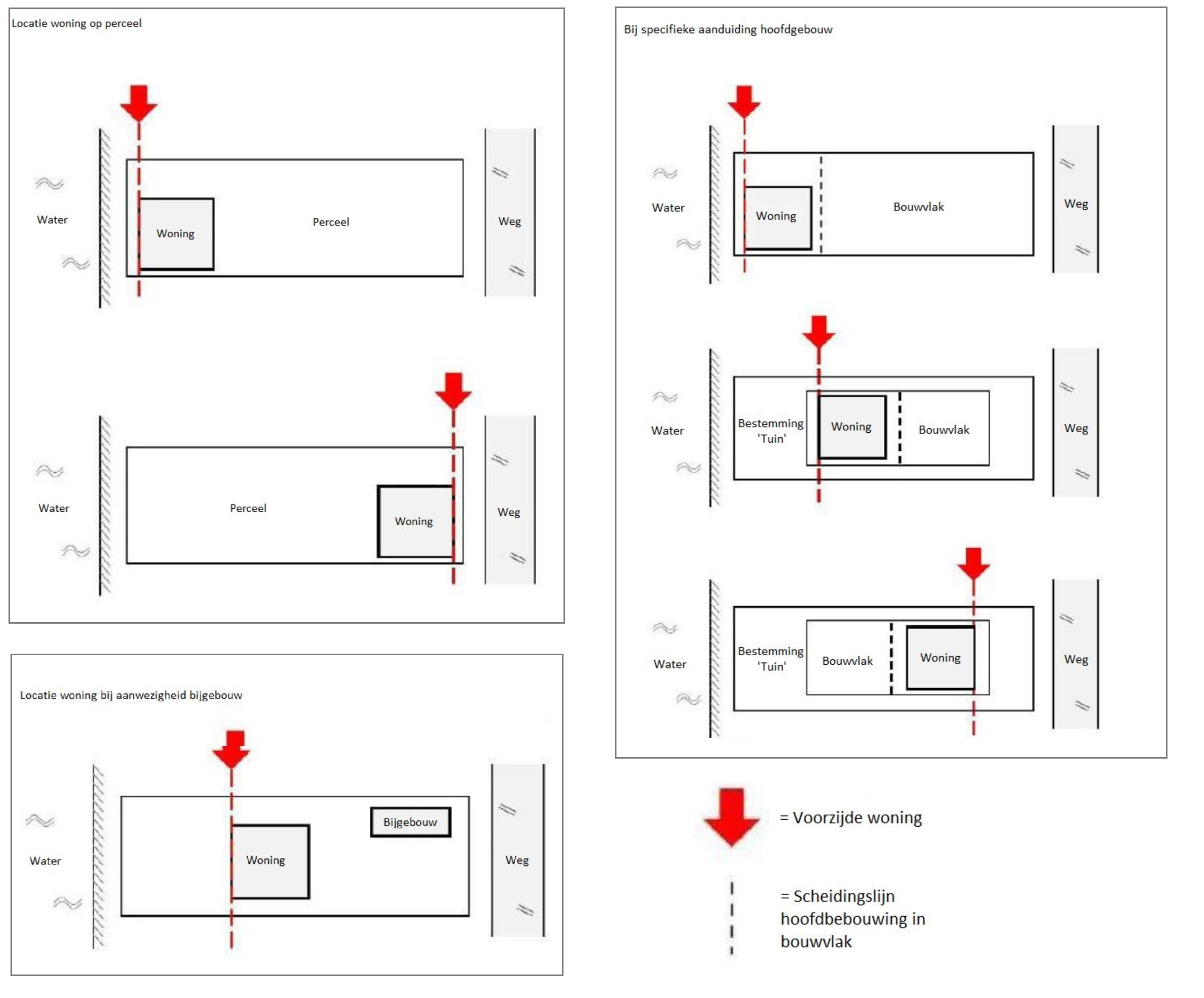 indien meerdere zijden van het perceel van de weg afgekeerd zijn, wijzen burgemeester en wethouders een achterste perceelsgrens aan;