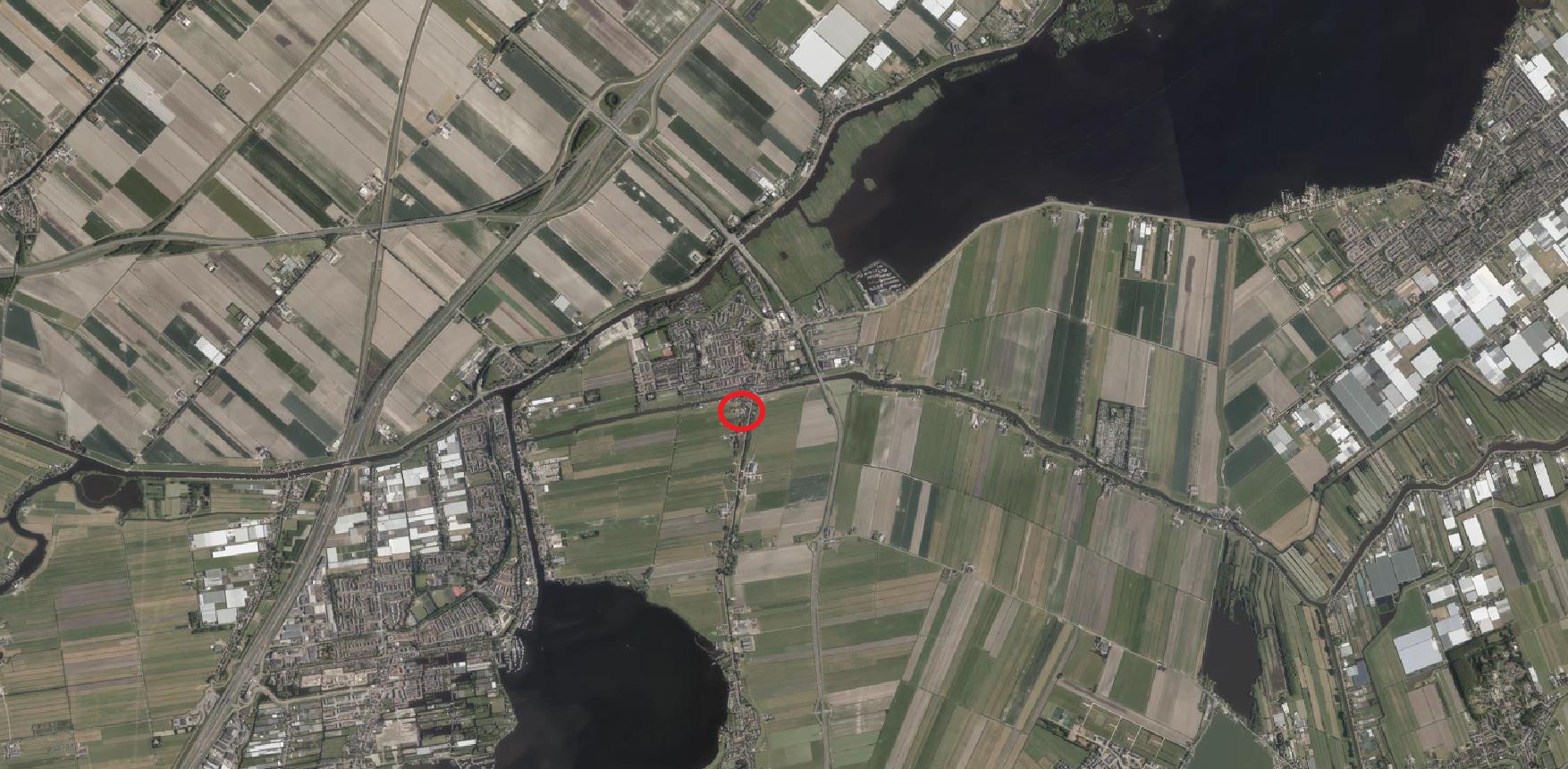 Globale ligging plangebied, rood omcirkeld (bron: ruimtelijkeplannen.nl)