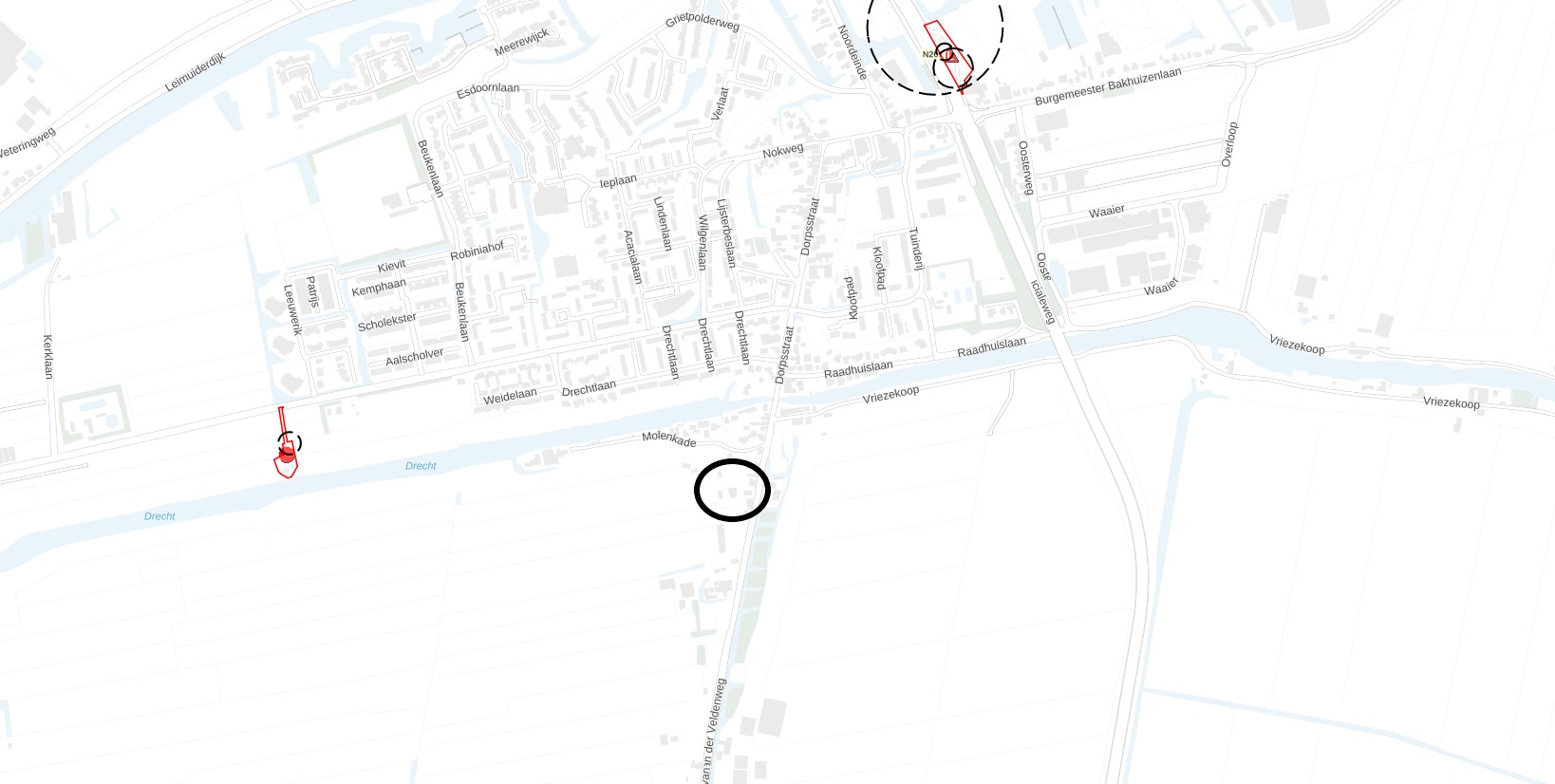 Ter plaatse van de dijk konden geen diepe boringen worden gezet in de oprit (allemaal gestaakt in puin op 55-56 cm -Mv). Aangezien hier een hoge archeologische verwachting is vastgesteld op basis van de historische kaarten, is er nog steeds de mogelijkheid dat hier zich nog archeologische niveaus, zoals veraarde veenlagen of ophogingslagen behorende tot de dijk, bevinden. Zodoende blijft in het oostelijk gedeelte de hoge archeologische verwachting behouden voor de perioden Late Middeleeuwen – Nieuwe Tijd. Tijdens het veldonderzoek bleek echter ook dat de huidige bebouwing reikt tot minstens 2,5 m -Mv, gerekend vanaf de Willem van der Veldenweg op de dijk. Zodoende zijn hier de archeologische niveaus uit de Late Middeleeuwen – Nieuwe Tijd waarschijnlijk verstoord en kan ter plaatse van de verstoring de verwachting bijgesteld worden naar laag.