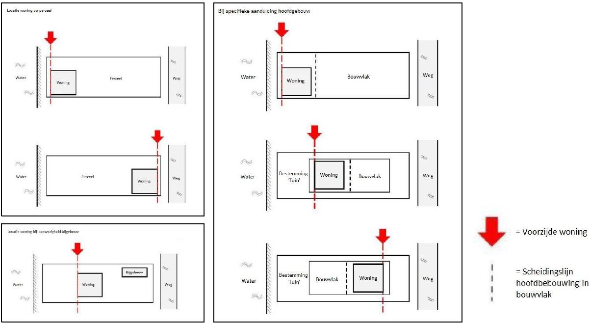 - In het geval van (her)oprichting van gebouwen is het bepaalde in sub a en b uitsluitend van toepassing indien het geschiedt op dezelfde plaats.