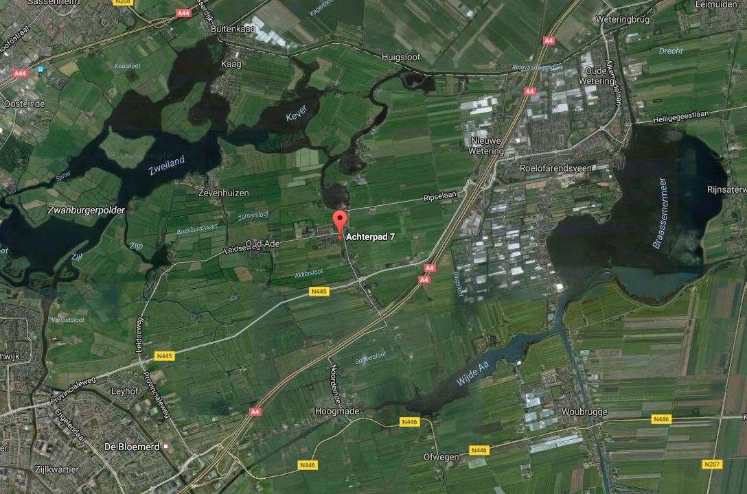 Het plangebied beslaat de percelen behorende bij de Oud Adeselaan 3, gelegen aan de noordzijde van het plangebied en de percelen behorende bij Achterpad 7, gelegen aan de zuidzijde. In het vervolg van dit document wordt het gehele gebied waarop dit bestemmingsplan betrekking heeft aangeduid met de term “plangebied”. Het gebied zonder de locatie Oud Adeselaan 3 zal steeds aangeduid worden met de term “ontwikkelgebied”. Het plangebied is gelegen aan de oostzijde van het Achterpad in Rijpwetering (gemeente Kaag en Braassem), ter hoogte van de bestaande boerderij op nr. 7. Op navolgende afbeeldingen zijn zowel de globale ligging als begrenzing van het plangebied weergegeven: