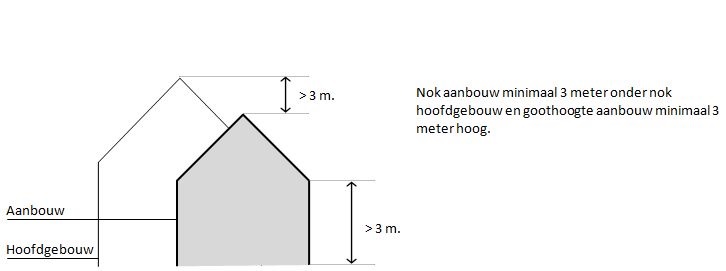- aanbouw/uitbouw: een aan een hoofgebouw aangebouwd gebouw dat functioneel met een zich op hetzelfde perceel bevindend hoofdgebouw is verbonden en door zijn verschijningsvorm een ondergeschikte bouwmassa vormt;