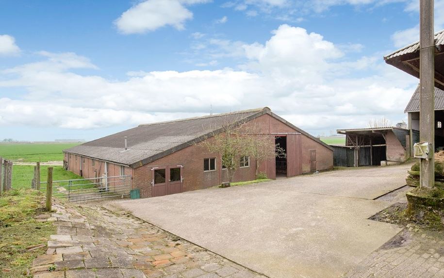 Op het achtererf staat een grote schuur/stal gebouwd in het jaar 1982. Deze stal heeft reeds sinds geruime tijd (circa 15 jaar) geen agrarisch gebruik meer. De schuur heeft een oppervlakte van circa 580 m² en bevat één bouwlaag met een flauwe kap. Direct achter de schuur is een (mest-)kelder aanwezig, die ongeveer 0,5 m boven het maaiveld uitsteekt.