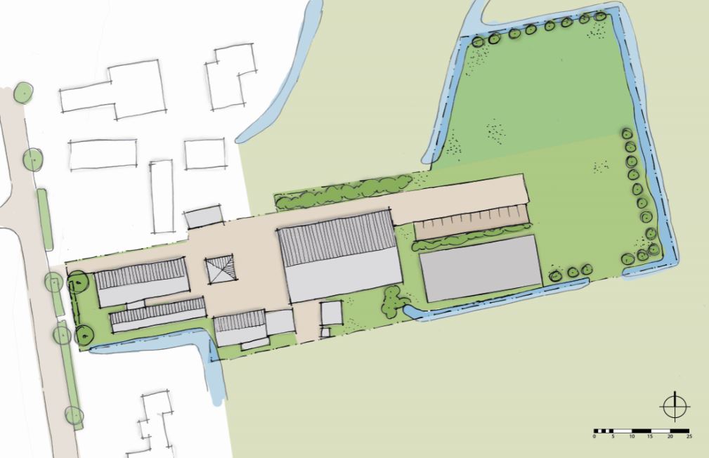 Het geheel zal zorgvuldig landschappelijk worden ingepast: zie onderstaande afbeelding van de beoogde landschappelijke inrichting.