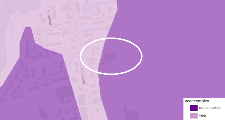 Uit voorgaande afbeelding blijkt dat het plangebied in een veencomplex ligt. De ondergrond wordt gevormd door veen en oude zeeklei. Het veen kent een geringe draagkracht en is daarnaast zeer gevoelig voor bodemdaling. Ontwikkelingen in het veenlandschap dragen zorg voor het behoud van het veen en zijn gericht op het beperken van bodemdaling. Met het voorgenomen plan zal er slechts gebruik worden gemaakt van bestaande gebouwen. Het initiatief zal geen nadelige invloed hebben op het veengebied en de ontwikkeling zal niet leiden tot extra bodemdaling. Het initiatief betreft een ontwikkeling die gezien de aard en omvang geen negatieve invloed heeft op het watersysteem.