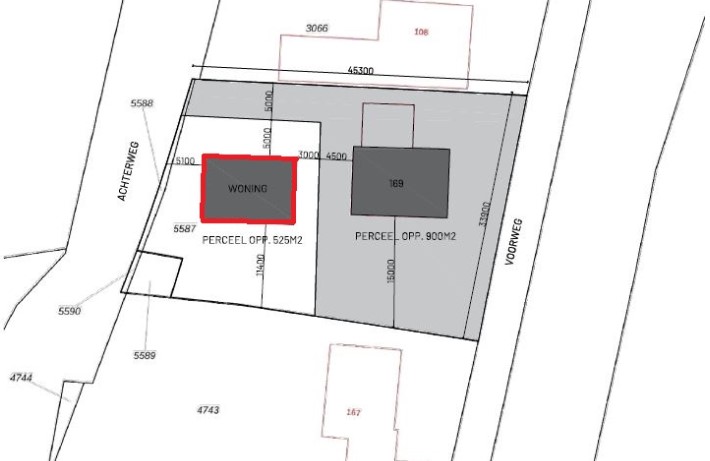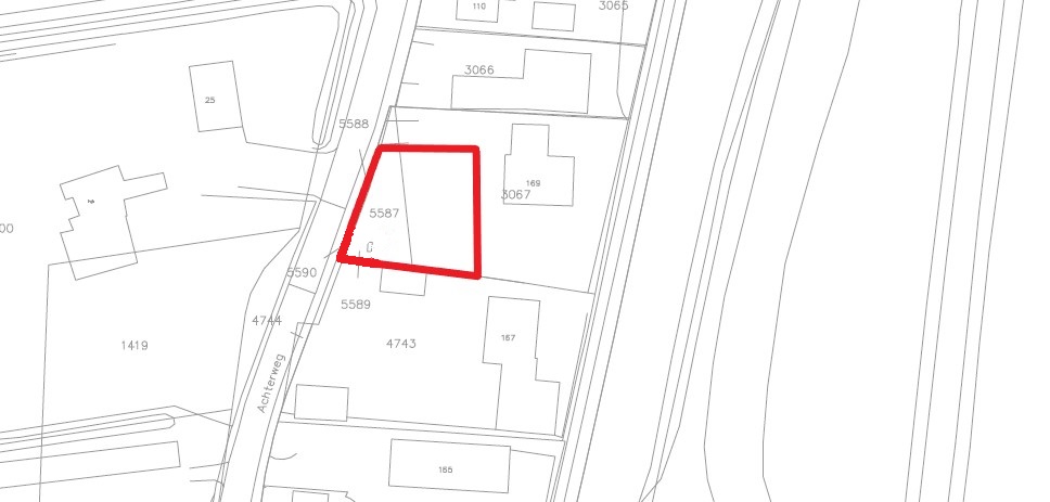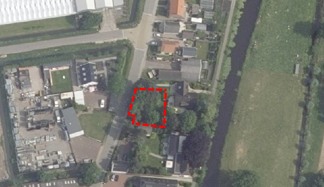 Op de navolgende afbeelding is de beoogde positie van de nieuwe woning weergegeven.
