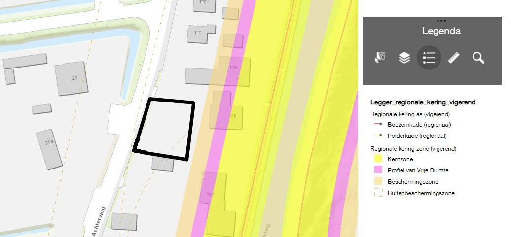 Uit de legger blijkt dat de buitenbeschermingszone, de beschermingszone en het Profiel van Vrije Ruimte niet tot in het plangebied reiken. Het is dan ook niet nodig een dubbelbestemming 'Waterstaat - Waterkering' op te nemen.